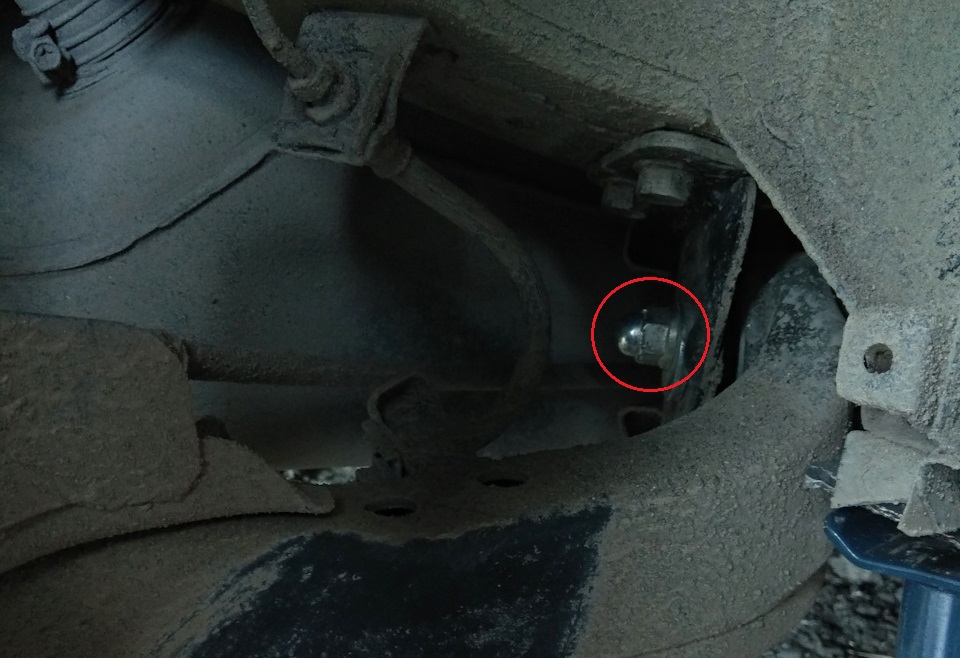— болт крепления нижнего рычага к продольному. Момент затяжки — 150 Н•м. Торцевой ключ на 21 мм;