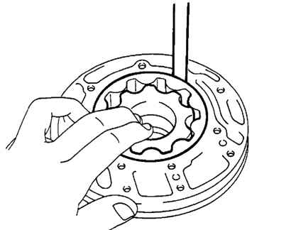 2. Прижмите ведомую шестерню к стенке корпуса. Используя щуп, измерьте зазор между ведомой шестерней и корпусом вала статора.