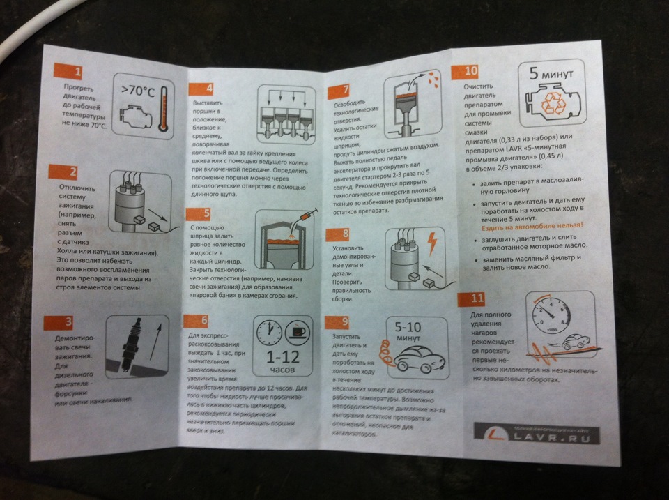 Спешу поведать вам о чудо 1,5 литрово двигателе, который кушает масло. Когда купил авто, пробег был 38000 км и жор масла был уже очевиден. За 10000 км доливал литр масла. На сегодняшний день пробег 107000 км и одного литра масла уже мало для доливки. Зная особенность полторашек, с решением что хуже не будет, решил попробовать раскоксовку лавр. Говорят помогает при залегании колец при относительно небольшом пробеге. Выполнял все по инструкции. Процедура довольно простая(фото инструкции прилагаю) залил отраву и оставил стоять на сутки. На след день обнаружил залитую жидкость только во втором цилиндре, в остальных же она просочилась в двигатель. Из этого можно полагать, что в в трех цилиндрах кольца залегли. Самый большой мой косяк это то, что не померил компрессию до и после, чтобы можно было судить о полезности этой жижи. После раскоксовки обязательно надо промыть двигатель и заменить масло, что собственно я и сделал. О результате пока ничего не могу сказать, буду наблюдать за уровнем масла и после обязательно отпишусь. Если масло будет меньше уходить, то хочу повторить процедуру.