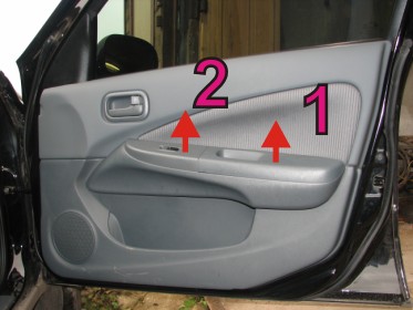 Вот и сами клипсы, которые держат обшивку, тянем в этих местах обшивку на себя. Когда все клипсы отщелкнулись, нужно поднимать обшивку вверх, чтобы выскочила уплотнительная резинка стекла.