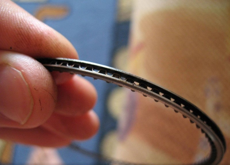 27. Снять поршневое кольцо можно руками. Разожмите верхнее компрессионное кольцо и снимите его. Аналогично снимите второе(нижнее) компрессионное кольцо.