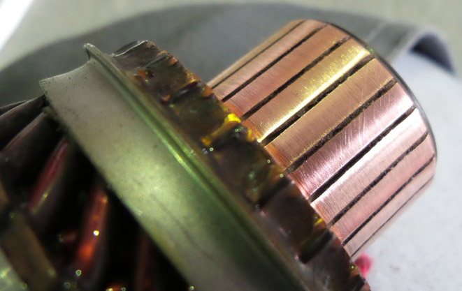 6. Очистите мелкой шкуркой якорь и все клеммы стартера.