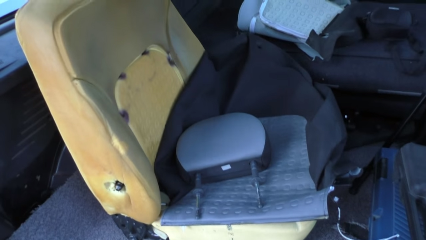 Примечание: для снятия заводских чехлов, необходимо полностью снять переднее сидение. Более подробно можно ознакомиться в статье Снятие и установка переднего сидения Fiat Doblo.