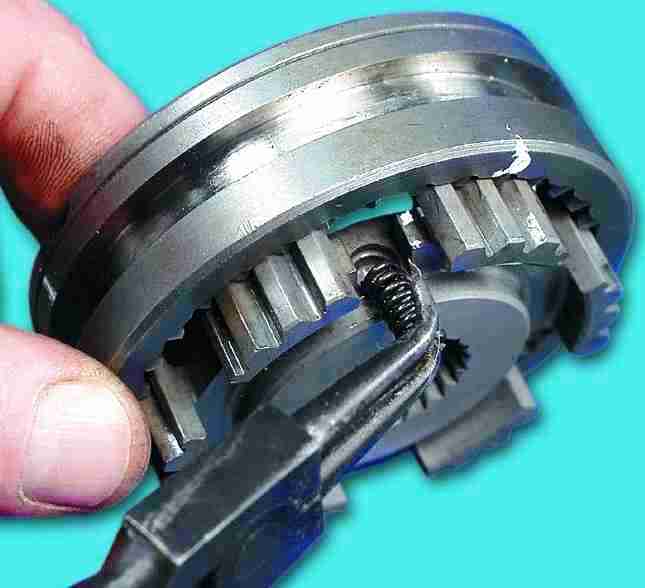 5. Смажьте пружину фиксатора пластичной смазкой и вставьте ее в отверстие в пазу ступицы.