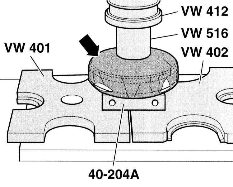 14. Напрессуйте шарнир до упора на соответствующем прессе. СТО AUDI применяют для этого специальный инструмент, показанный на иллюстрации.