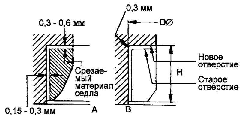 Механически обработайте (срежьте) заменяемое седло клапана изнутри для уменьшения толщины его стенок.
