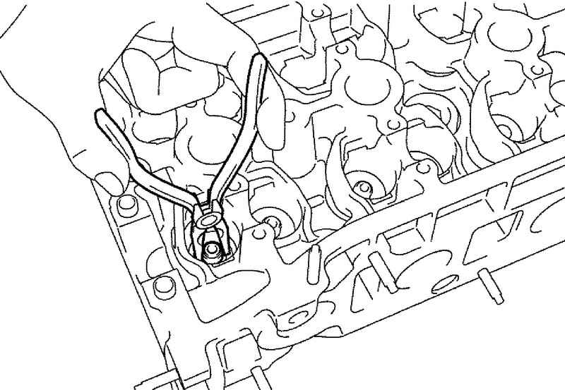 ПРИМЕЧАНИЕ При сжатии пружины клапана следите за тем, чтобы тарелка пружины не касалась маслосъемного колпачка. |