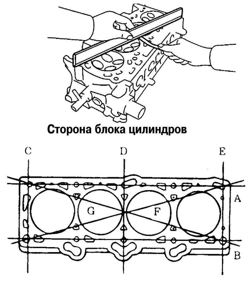 Рис. 2.144. Проверка неплоскостности привалочной поверхности головки блока цилиндров