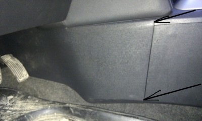Снимаем боковую накладку(рис.3)со стороны пассажирского сиденья, поддеваем руками в указанных местах и тянем на себя