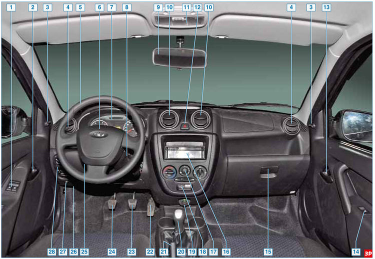 2. Затем установите переключатель корректора света фар в положение «0» (один водитель или водитель и пассажир на переднем сиденье) и включите ближний свет фар.
