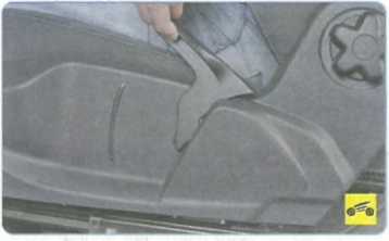 Рычаг регулировки положения валика поясничного подпора находится на левом торце спинки сиденья посередине. Положение валика меняют поворотом рычага вперед или назад.
