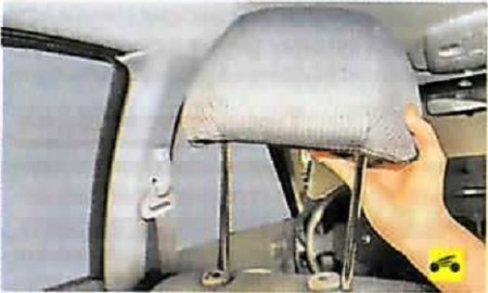 2. Переместите подголовник вверх или вниз на требуемую высоту. Оптимальное положение подголовника - его верхняя кромка расположена на одном уровне с верхней частью головы. При необходимости (например, для раскладывания сиденья в спальное положение) подголовник можно снять.