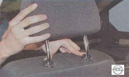 При необходимости (например, для раскладывания сиденья в спальное положение) подголовник можно снять, для чего нажмите одновременно на два фиксатора стоек подголовника.
