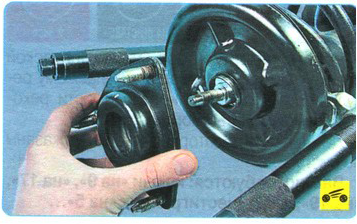 При сборке амортизаторной стойки поврежденные прокладки пружин замените новыми.