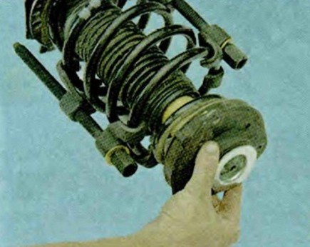8. Осмотрите детали стойки. При обнаружении трещин, деформации и разрушений на корпусе стойки или нижней чашке пружины замените стойку.