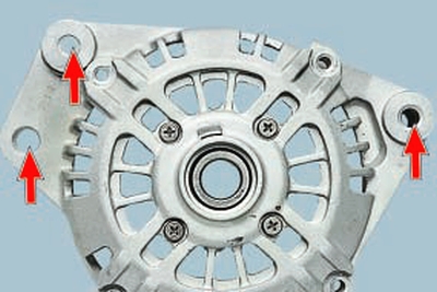 6. Пометьте любым способом (например, маркером) взаимное расположение статора и крышек генератора, чтобы при обратной сборке обеспечить соосность отверстий для крепления генератора в лапах крышек.