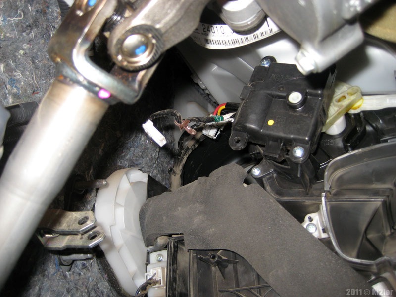 Снимаем нижнюю часть панели под рулём. Для этого отсоединяем трос на откр. капота, откручиваем саморез торксом Т20, и начинаем нежно выщёлкивать защёлки, лучше предварительно залезть под панель и определить их место положения.