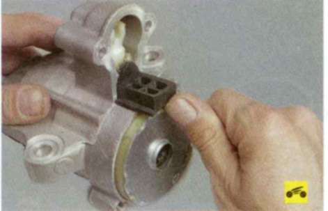 5. Извлеките из корпуса тягового реле якорь и возвратную пружину.