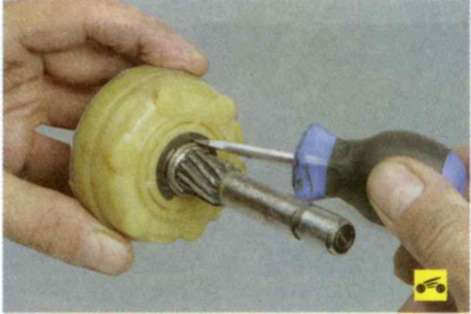 2. Проверните шестерню привода. Она должна легко проворачиваться относительно ступицы муфты в направлении вращения якоря и не должна проворачиваться в противоположном направлении.