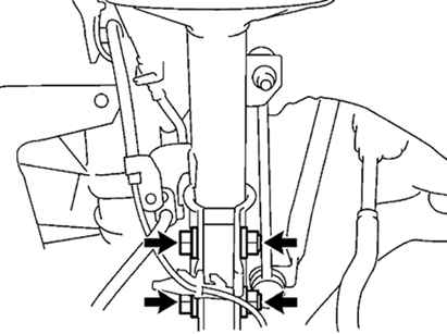 Установите 2 болта, гайки и переднюю ступицу в сборе на амортизаторную стойку передней подвески.