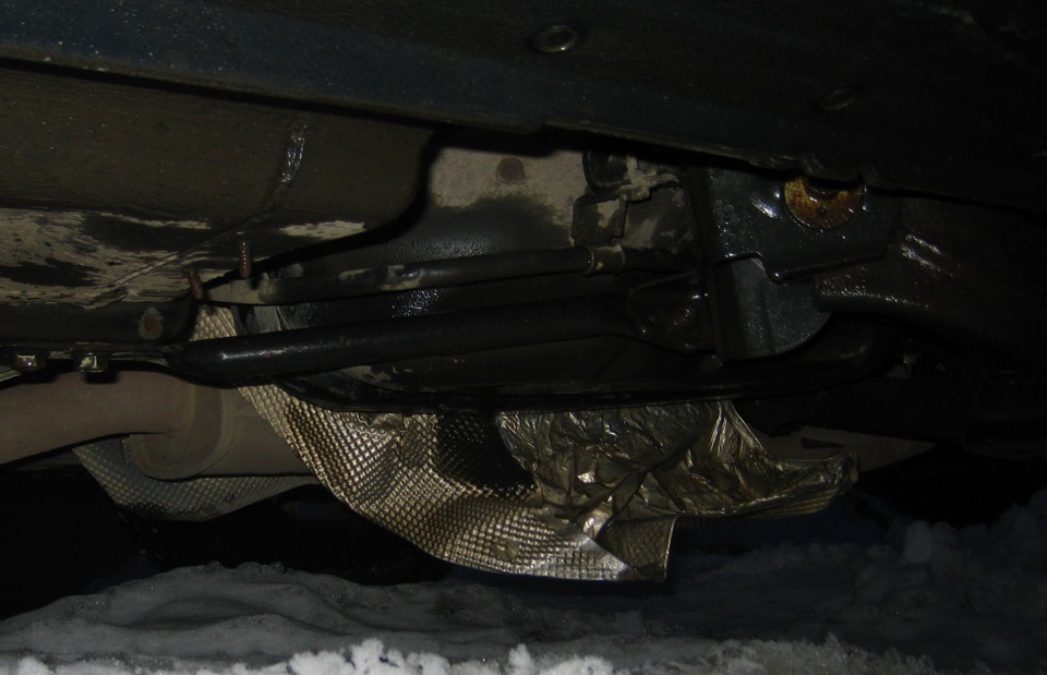 Это был тепловой экран между банкой глушителя и топливными баками.