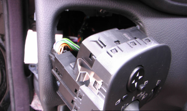Сначала снимаем блок с переключателем и регулировкой света. Он весь на защелках.
