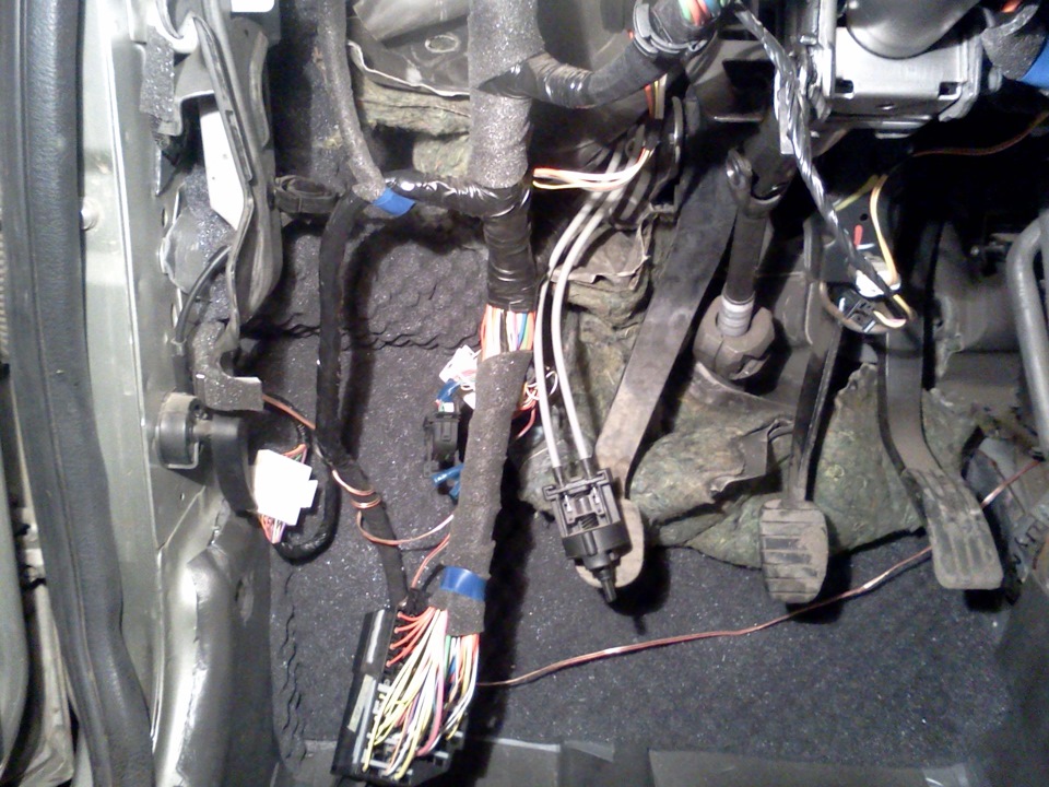 С водительской стороны — от двери до пучка проводки и снизу под рулевой рейкой до блока отопителя и кондиционера.