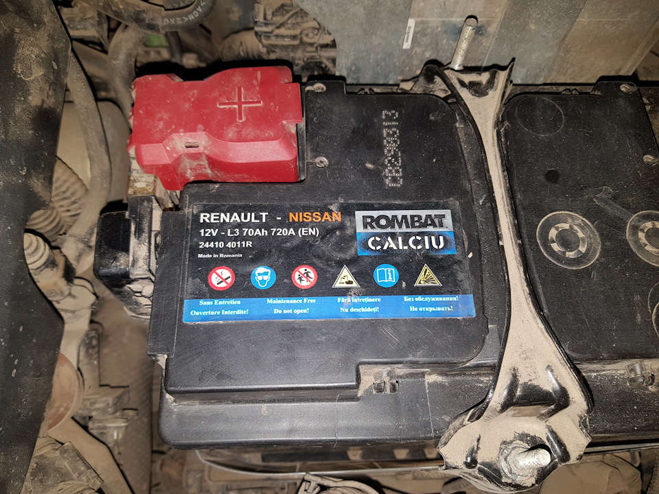 12. Установите аккумулятор на Ниссан Х-Трейл в порядке, обратном снятию. Соблюдая полярность, подсоедините клеммы (сначала плюсовую).