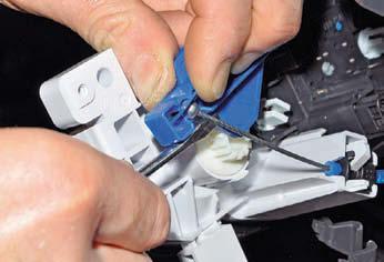 …и выводим оболочку тяги из держателя на блоке, одновременно выводя наконечник тяги из рычага привода заслонки рециркуляции.