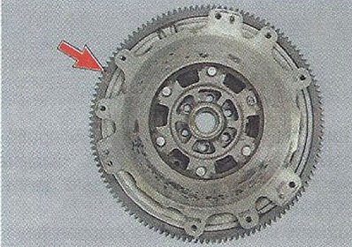 6. Проверьте состояние зубьев обода маховика и в случае их повреждения замените маховик.