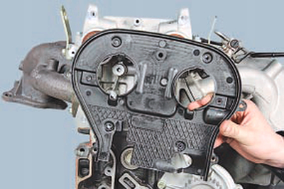 5. Выверните шесть винтов крепления задней крышки привода газораспределительного механизма.