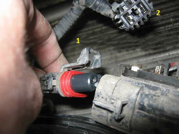 3. Отсоедините колодку жгута проводов от электровентилятора, отжав ее фиксатор.
