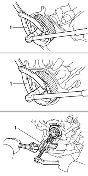 Снятие шкивов распределительных валов и промежуточного шкива: