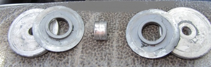 15. Снимите две внутренние пластмассовые и две наружные металлические шайбы, а также металлическую дистанционную втулку.