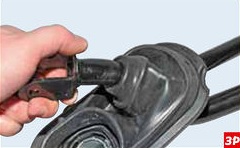 4. Вывернув чехол наизнанку, размотайте изоляционную ленту, охватывающую чехол рычага (при последуюущей сборке изоляционную ленту можно заменить на пластмассовый хомут).