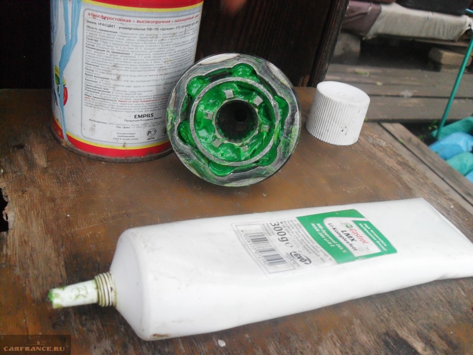 20. Для удержания шариков в окнах наносим на них смазку (ШРУС-4). Вкладите в полости корпуса шарнира и чехла эту же смазку, нанесите ее на шарики и сепаратор – всего 80 г.