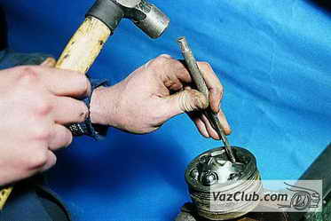 7. Сдвиньте шарнир наружу по валу до упора и сбейте его, нанося удары с помощью выколотки по обойме.