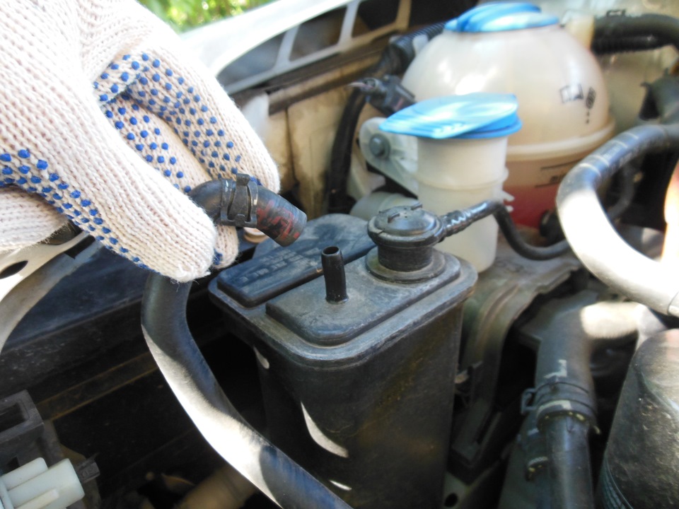 Когда снял адсорбер, ради эксперимента решил его продуть вот в это отверстие