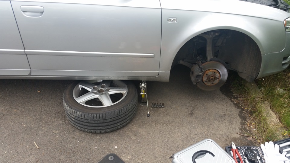 1. Вывешиваем машину домкратом, ставим на упоры, снимаем колесо.