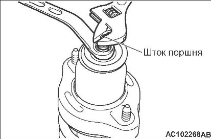 Самоконтрящаяся гайка штока внутри амортизатора может быть ослаблена. Не используйте ключ ударного действия для ослабления самоконтрящейся гайки.