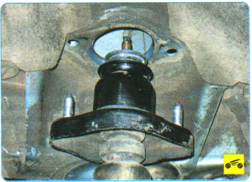 8. Отверните две гайки шпилек крепления верхней опоры амортизатора к кузову...