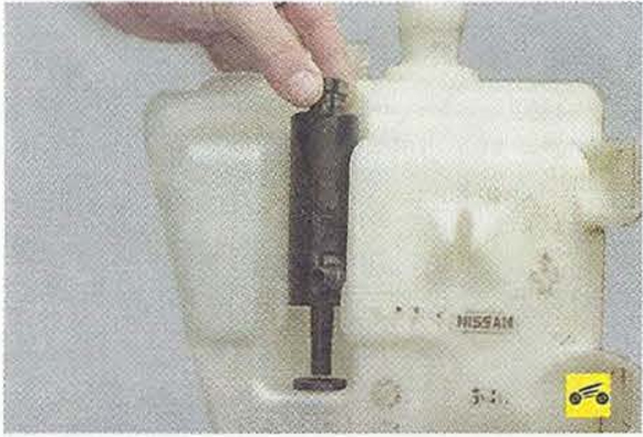 2. Выньте из горловины бачка наливную трубу бачка омывателя.