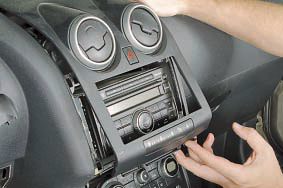 11. Отсоедините колодку и снимите центральную накладку панели приборов.