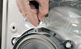 7. Установите динамик передней двери и все снятые детали на место в порядке, обратном снятию.