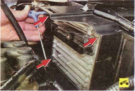 4. Выверните четыре винта крепления крышки короба блока управления двигателем.