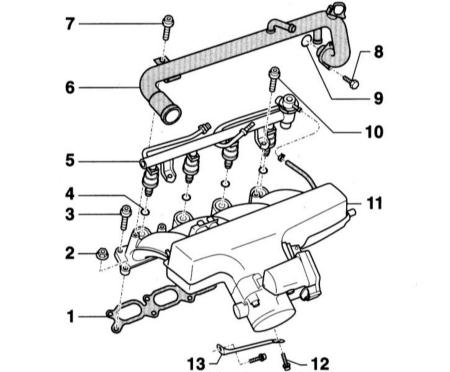 •    12 — комбинированный клапан подачи вторичного воздуха, с патрубком;
