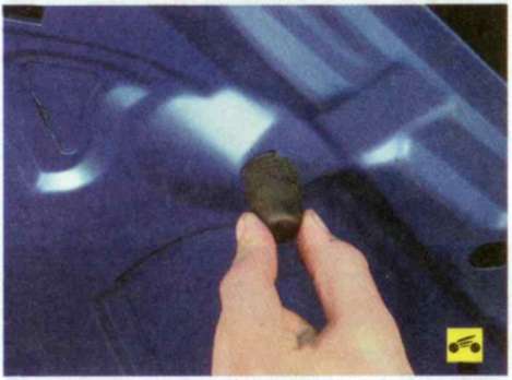 12. Если снимаете капот для замены, выверните из отверстий усилителя капота два резиновых упора, расположенные снизу в передних углах капота...