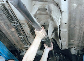Попросите помощника придерживать карданную передачу, когда вы будете отворачивать гайки крепления, чтобы избежать травм при ее падении.