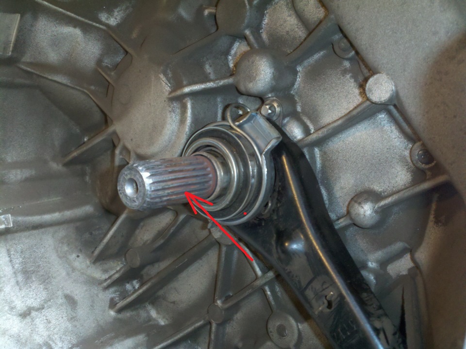 23. Перед установкой коробки передач нанесите тонкий слой смазки ШРУС‑4 на шлицевой конец первичного вала.