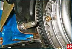 24. Для облегчения операции по установке коробки передач вверните направляющую шпильку М12×1,25 мм с пропиленным шлицом под отвертку в переднее нижнее резьбовое отверстие блока цилиндров.